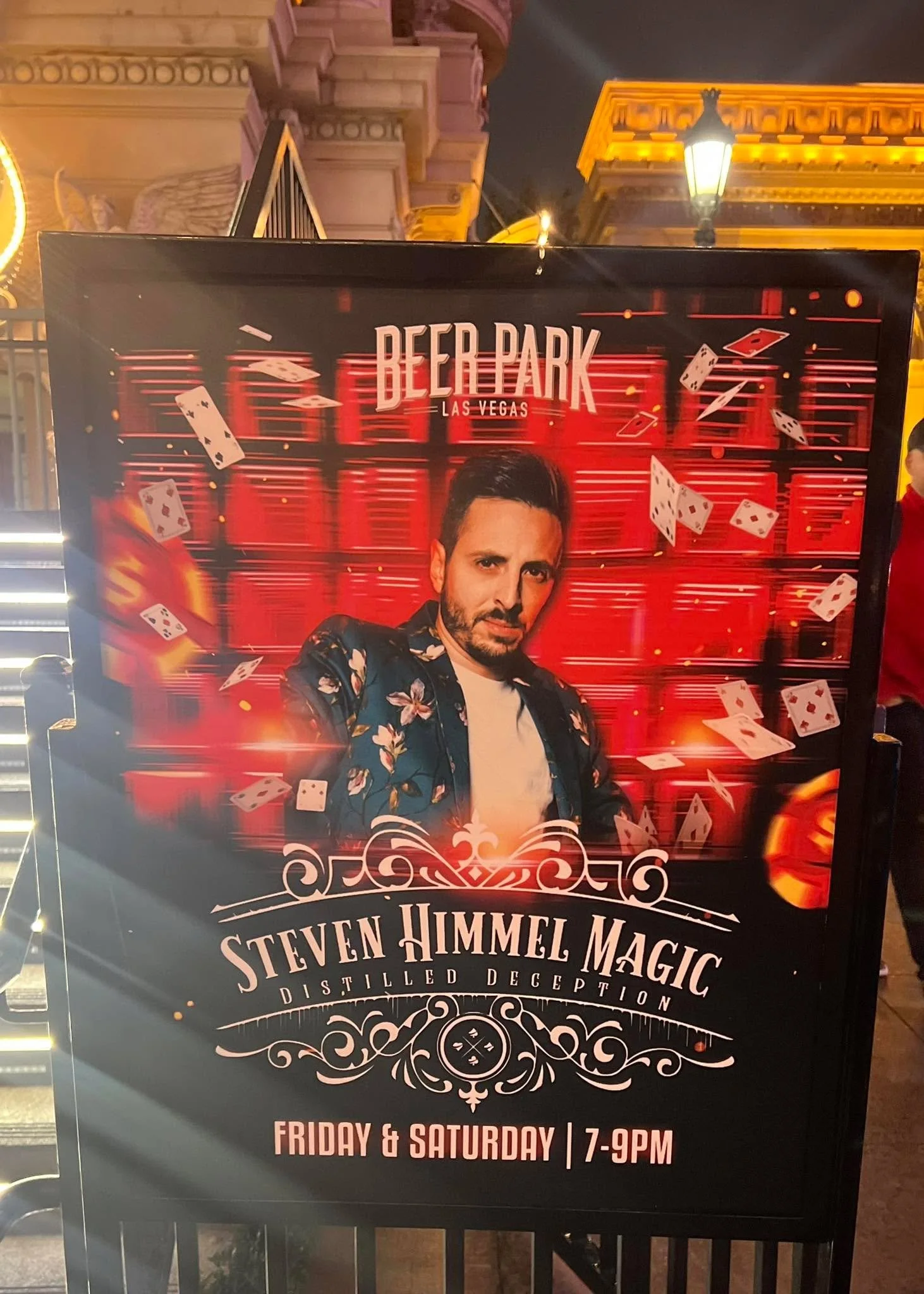 He is the resident magician at Beer Park at the Paris Hotel in Las Vegas. He performs table-side every Friday and Saturday night.